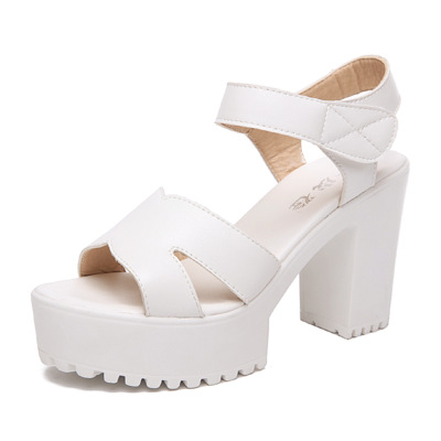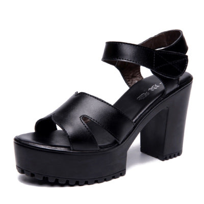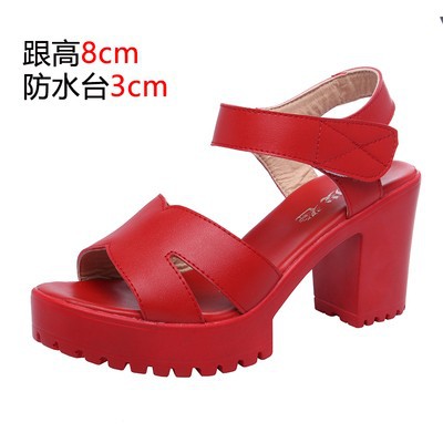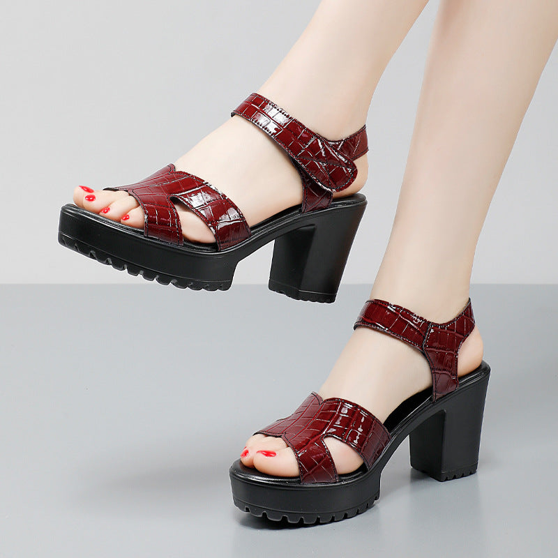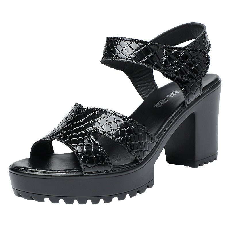 Painted Leather High Heel Waterproof Sandals Women Fashion Crocodile Pattern Walking Shoes Summer Coarse Heel Magic Sticky H Women's Shoes HZ0115