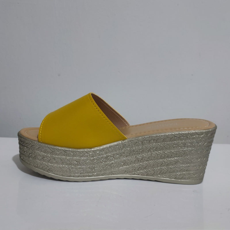Pine Cake Slippers Women Cool Drag Slope With High Heel 7CM Word Drag Leather Large Size Women's Shoes 35-42 Perennial HZ0115
