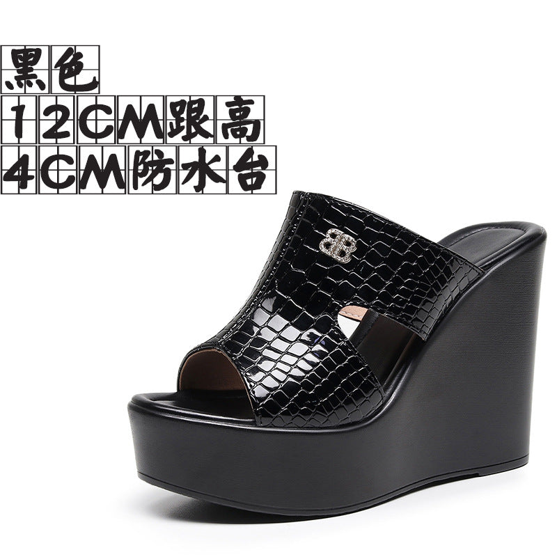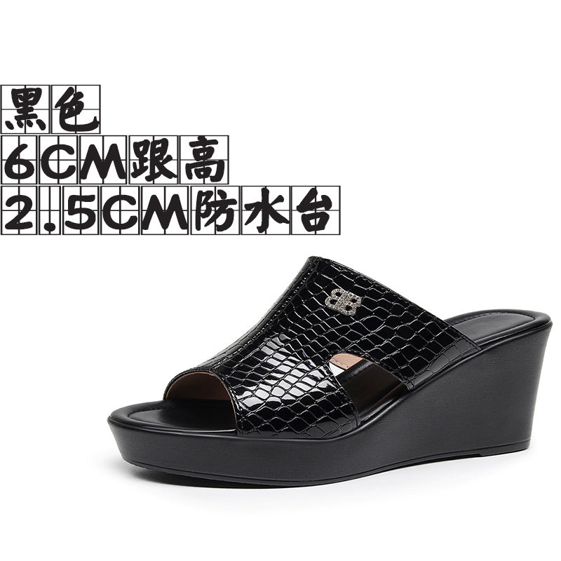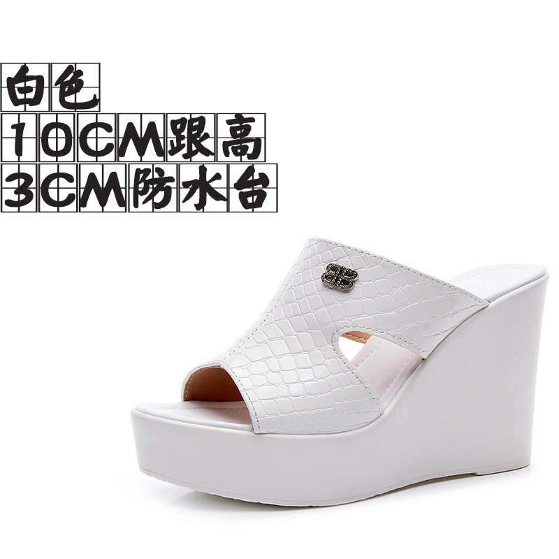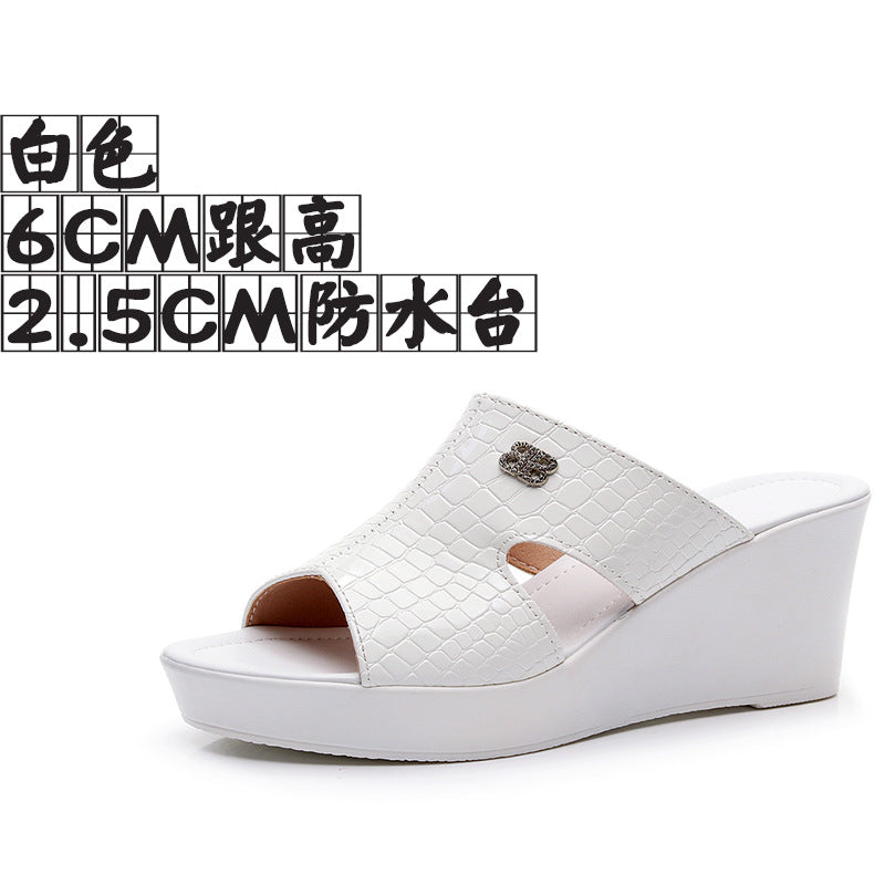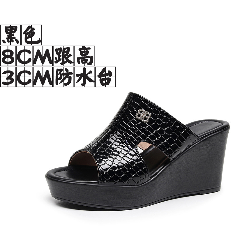 Real Leather Slope And Slippers Women Wearing Fashion Pine Cake Thick Bottom Fitting Room A Word Drag Anti-Slip High And Cow Skin Cold Drag HZ0115