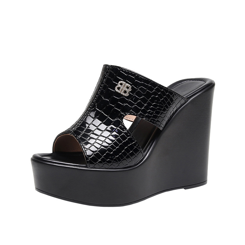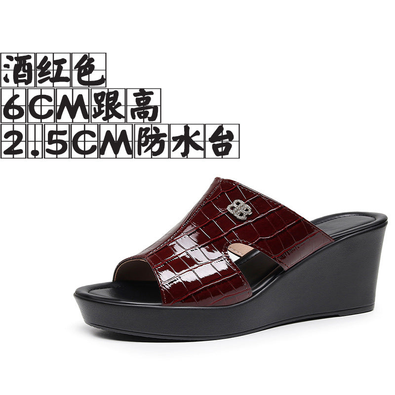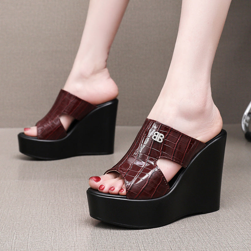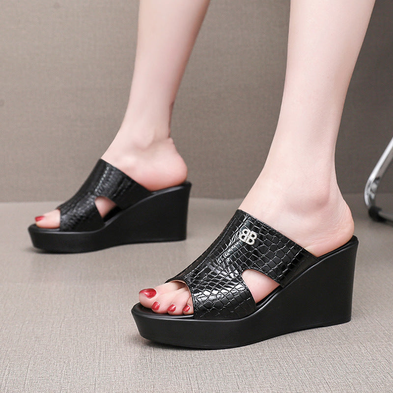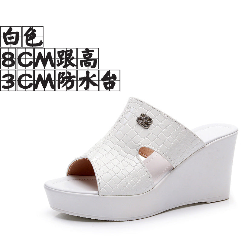 Real Leather Slope And Slippers Women Wearing Fashion Pine Cake Thick Bottom Fitting Room A Word Drag Anti-Slip High And Cow Skin Cold Drag HZ0115