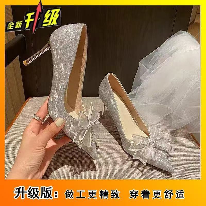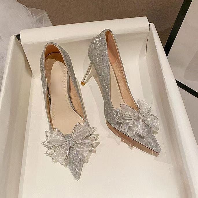 Sharp High-Heeled Women Fashion Comfortable Shallow Bow Fine Heel Single Shoes Women 2025 Spring And Summer New HZ0115
