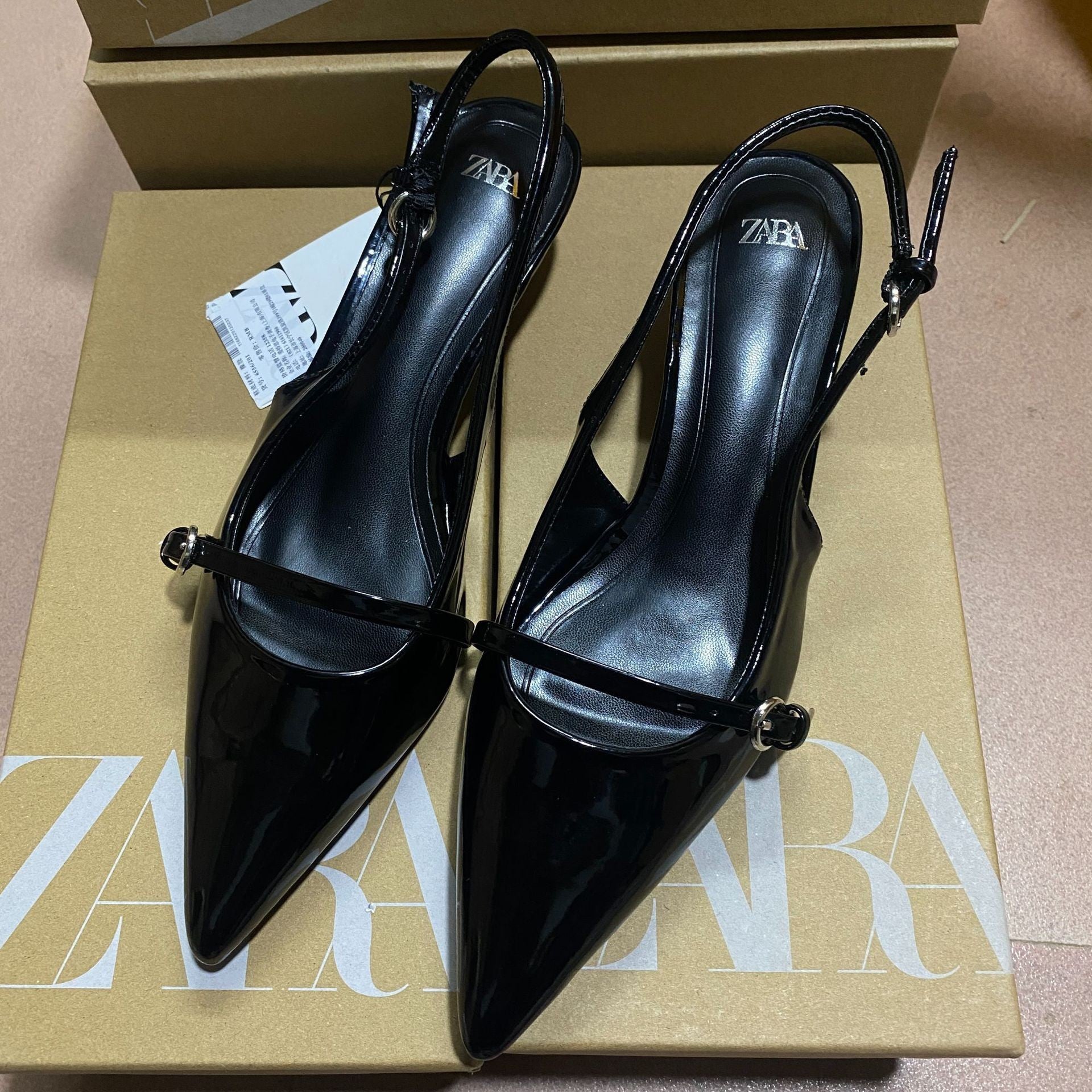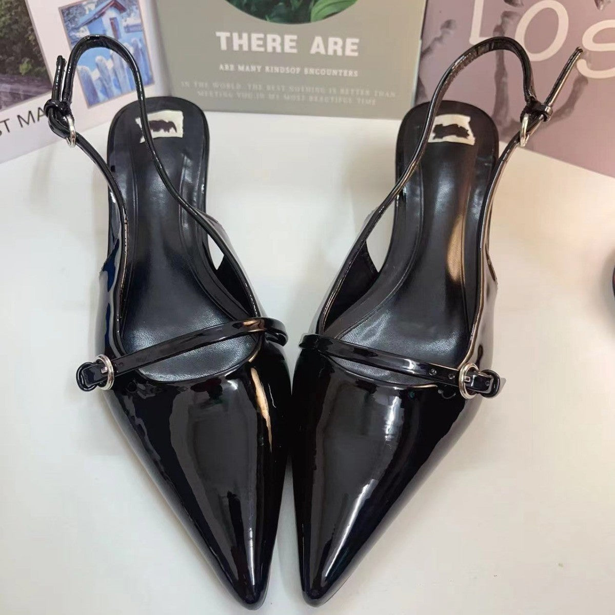 Spring 2025 New Patent Leather Fine Heel Sandals With Sharp Head Back Empty Cat Root Muller 4086 HZ0115