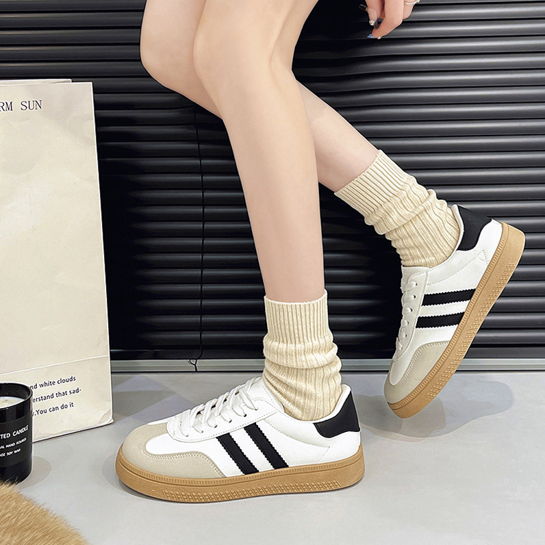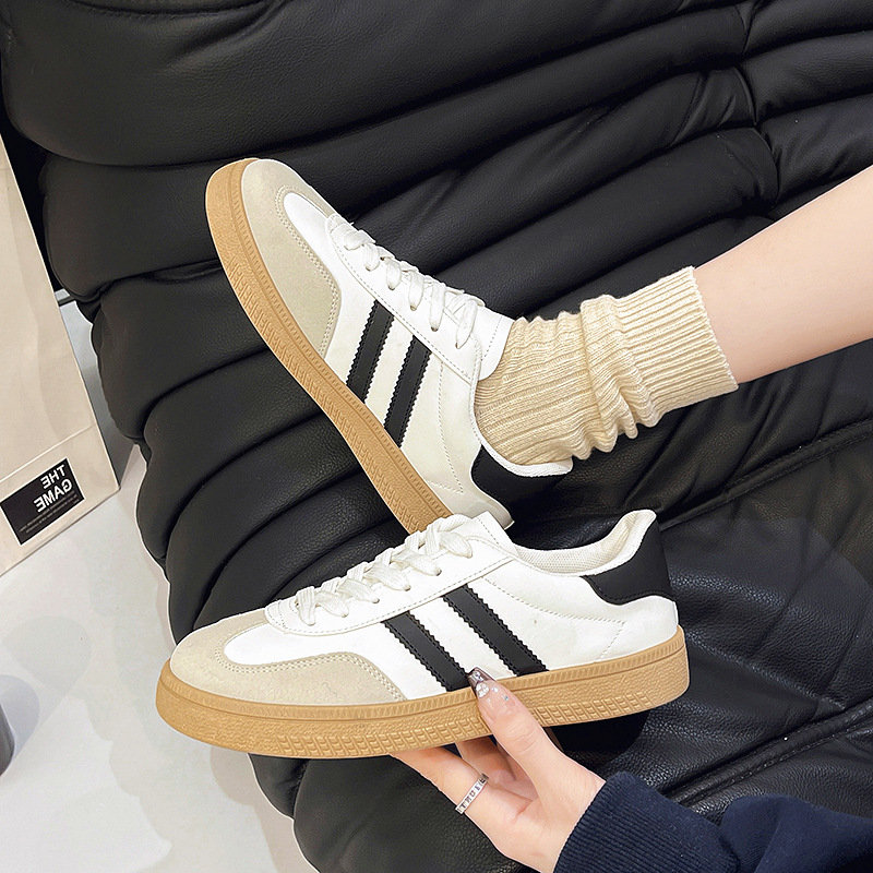 Spring And Autumn 2025 New Korean Version Of The Round Head Tie With Color Fashion Flat Bottom Students Casual Board Shoes HZ0115