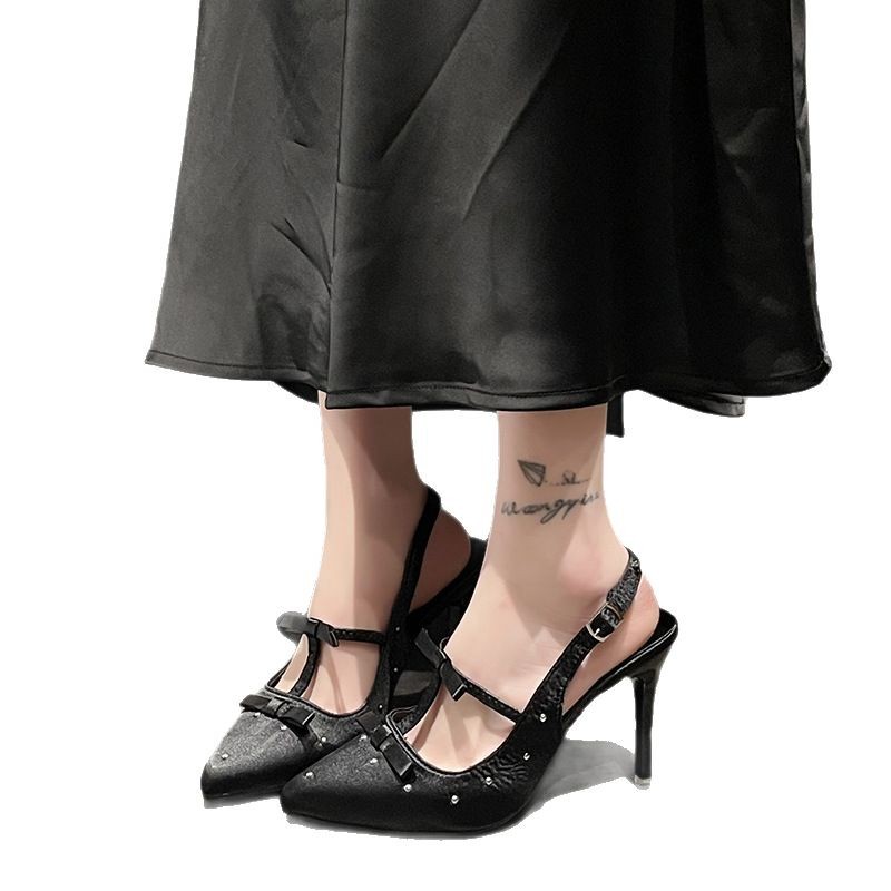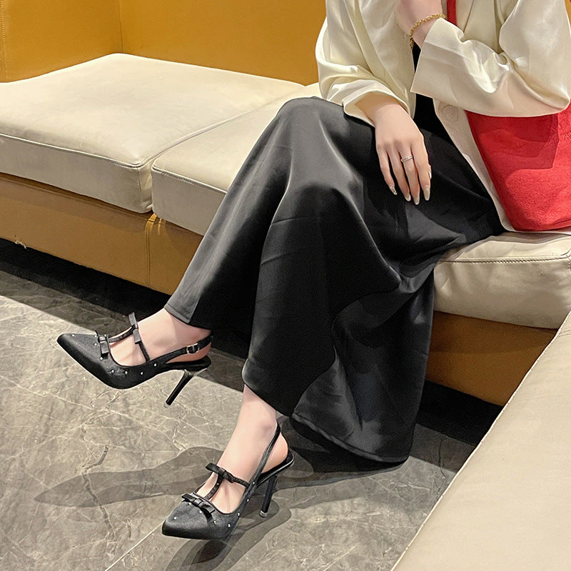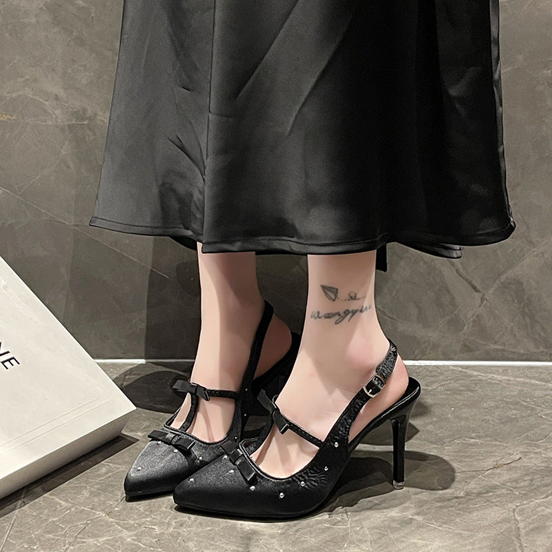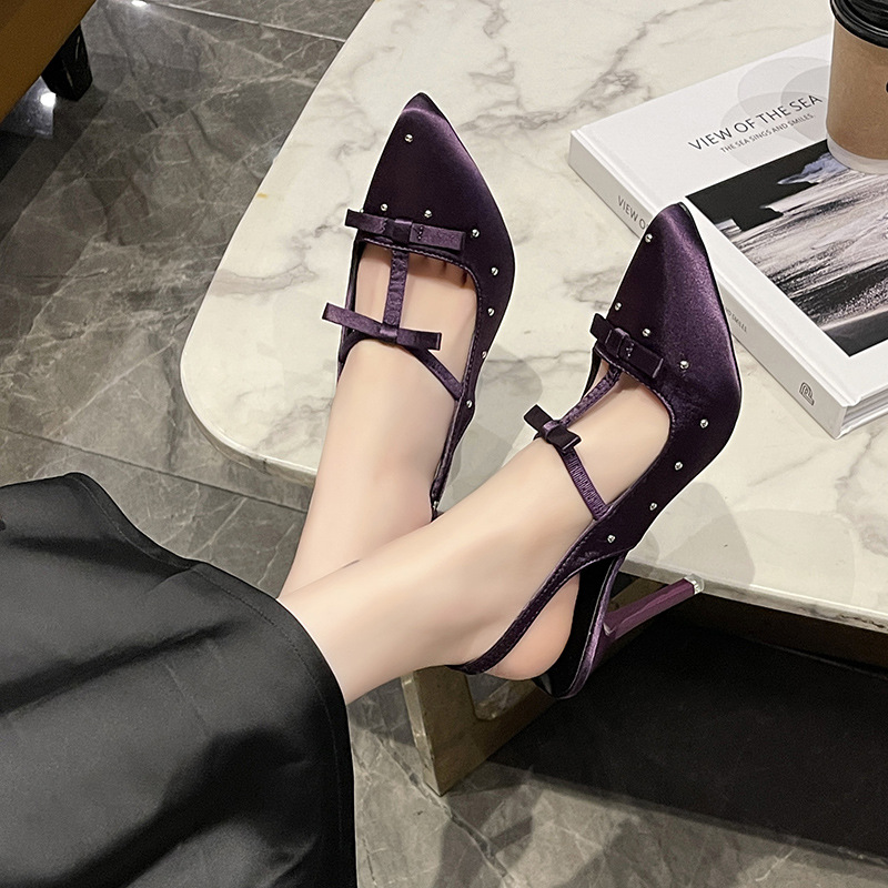 Spring And Autumn 2025 New Sharp-Colored Silk Satin Light Mouth With Back Air Water Drill High Heel Women's Fine Heel Single Shoes HZ0115