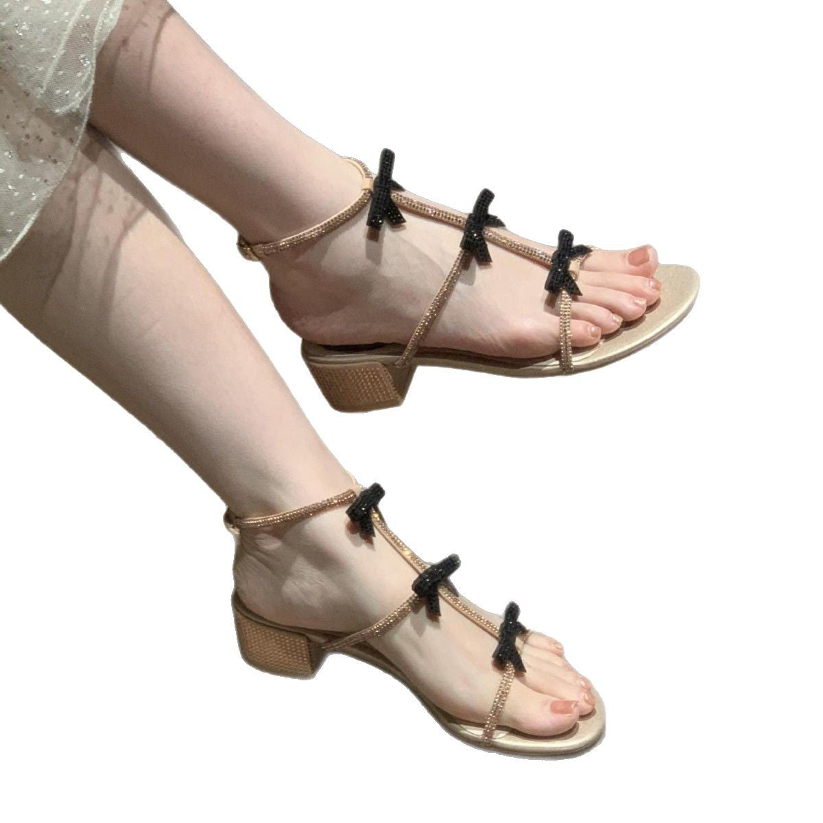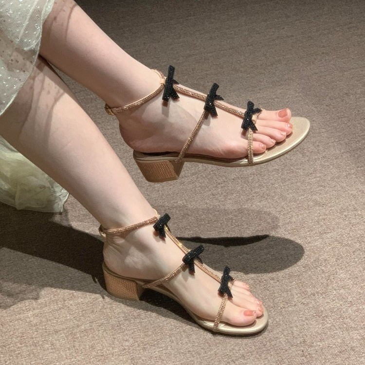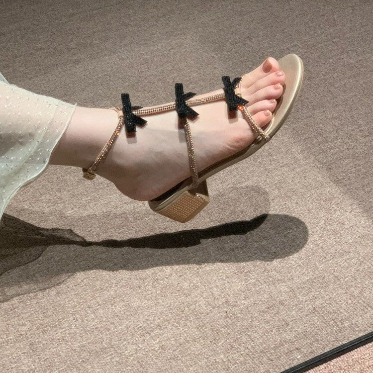 Spring And Summer Classic Water Drill Sandals Black Bow Fairy Wind Roman Fine Ribbon Hollow Princess Shoes Children's HZ0115