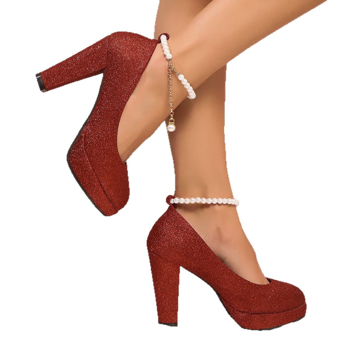 Temperament Waterproof Table Coarse Heel New Mary Jane Shoes Wedding Shoes Bridal Shoes Square Pearl Brighte High Heels HZ0115