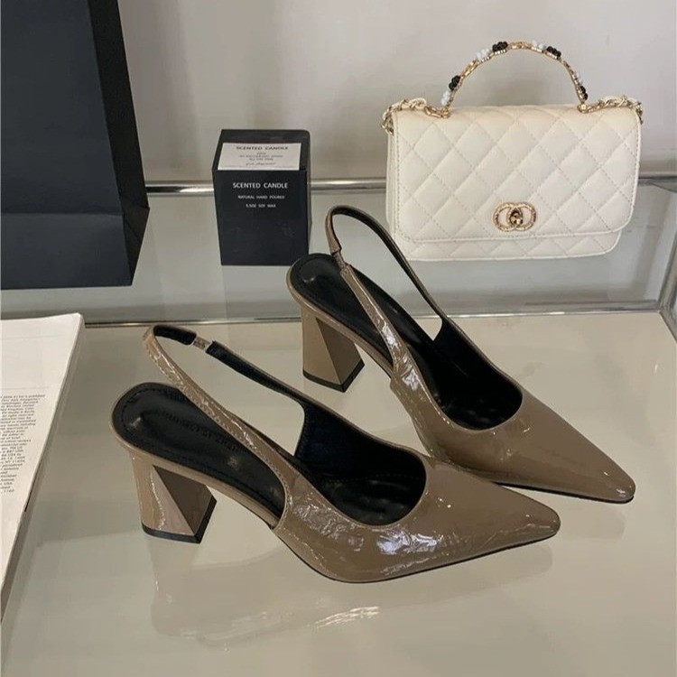 The New Women's Shoes In The Summer Of 2025 Simple Classic Back Empty Bag Head Thick Heel Korean Version Of High-Heeled Single Sandals HZ0115