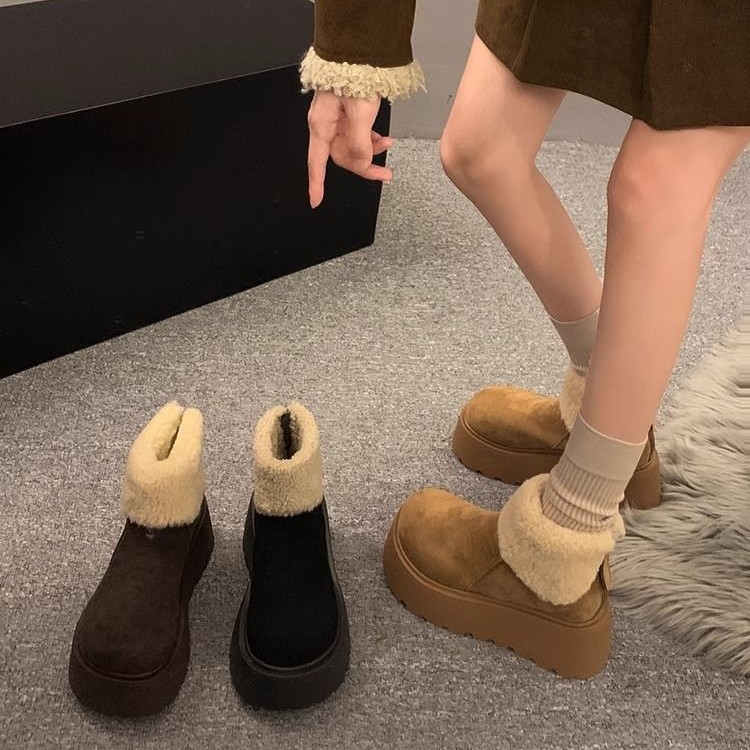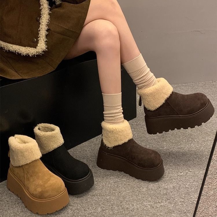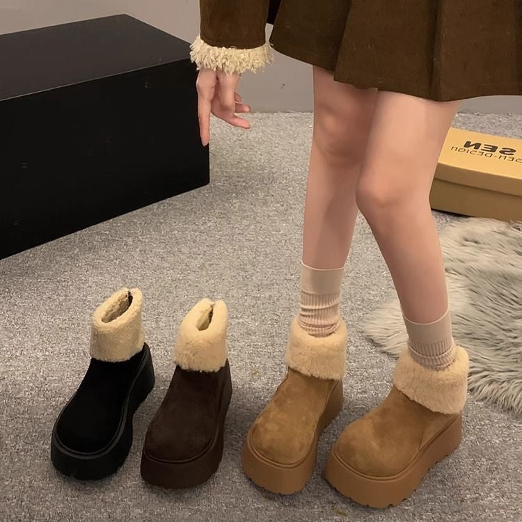 Thick Bottom Height Snow Boots Women 2025 New Winter Plus Velvet Warm Hair Short Boots Fashion Ugly Big Head Cotton Shoes HZ0115