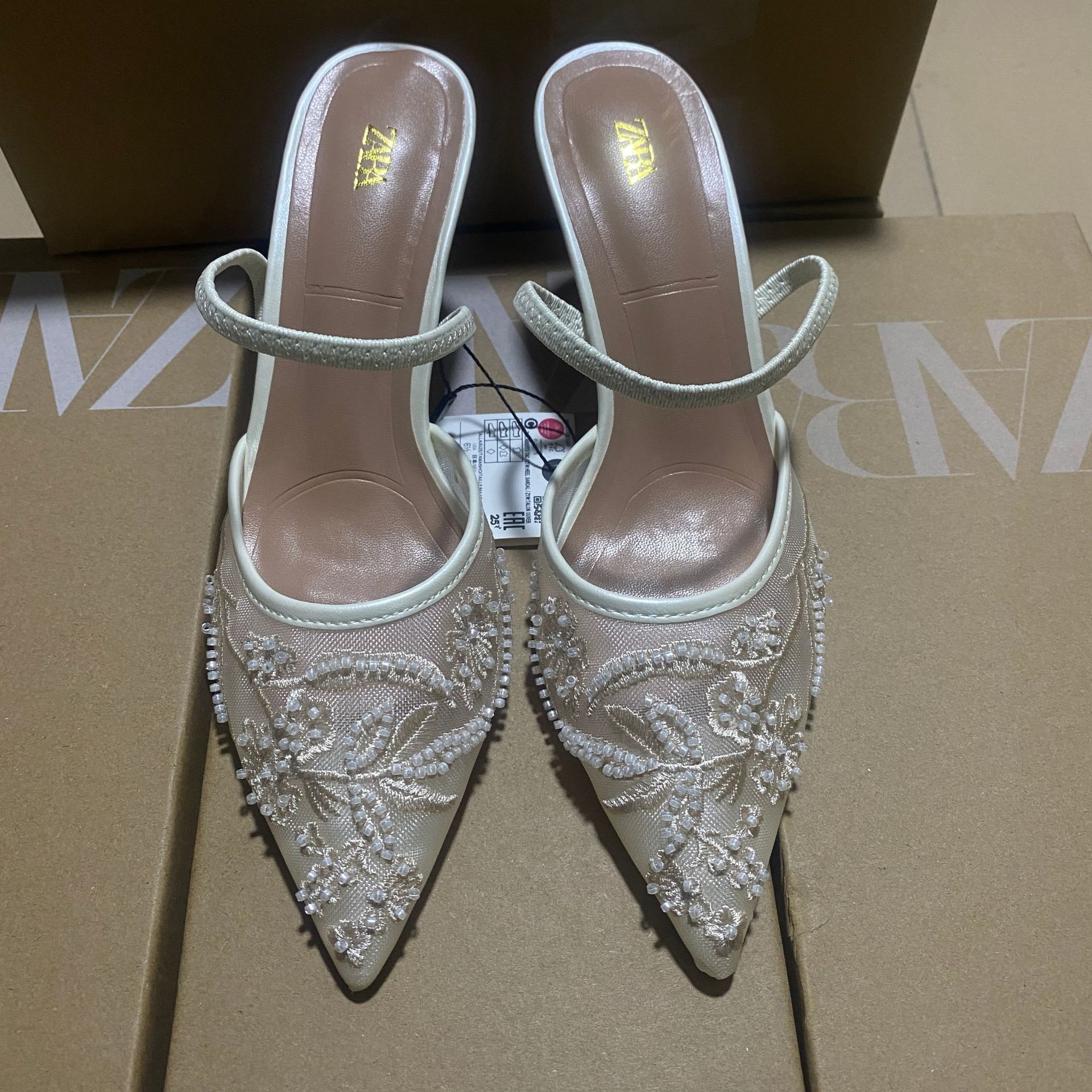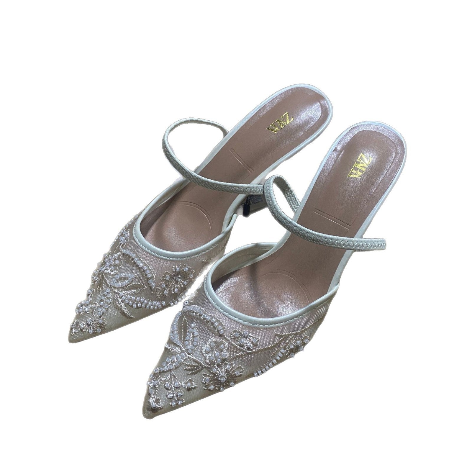 ZA 2025 New New Products Sharp Head Behind The Empty Solid Color Embroidery Mesh Fine High Heel Muller Shoes 8236 HZ0115