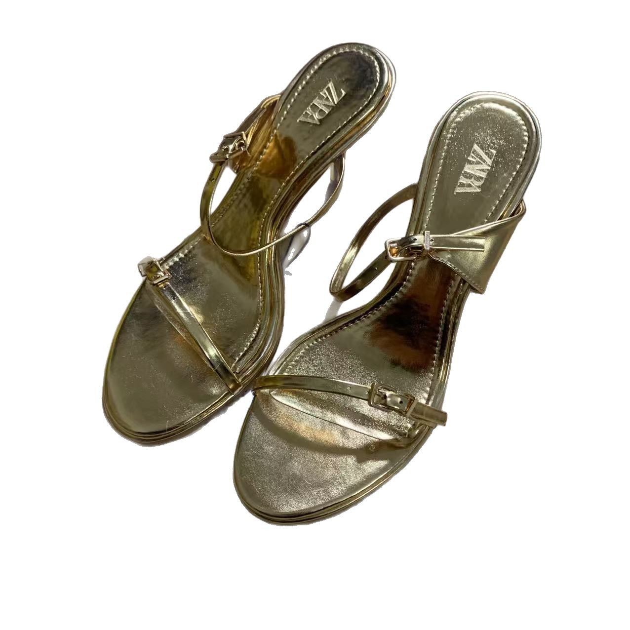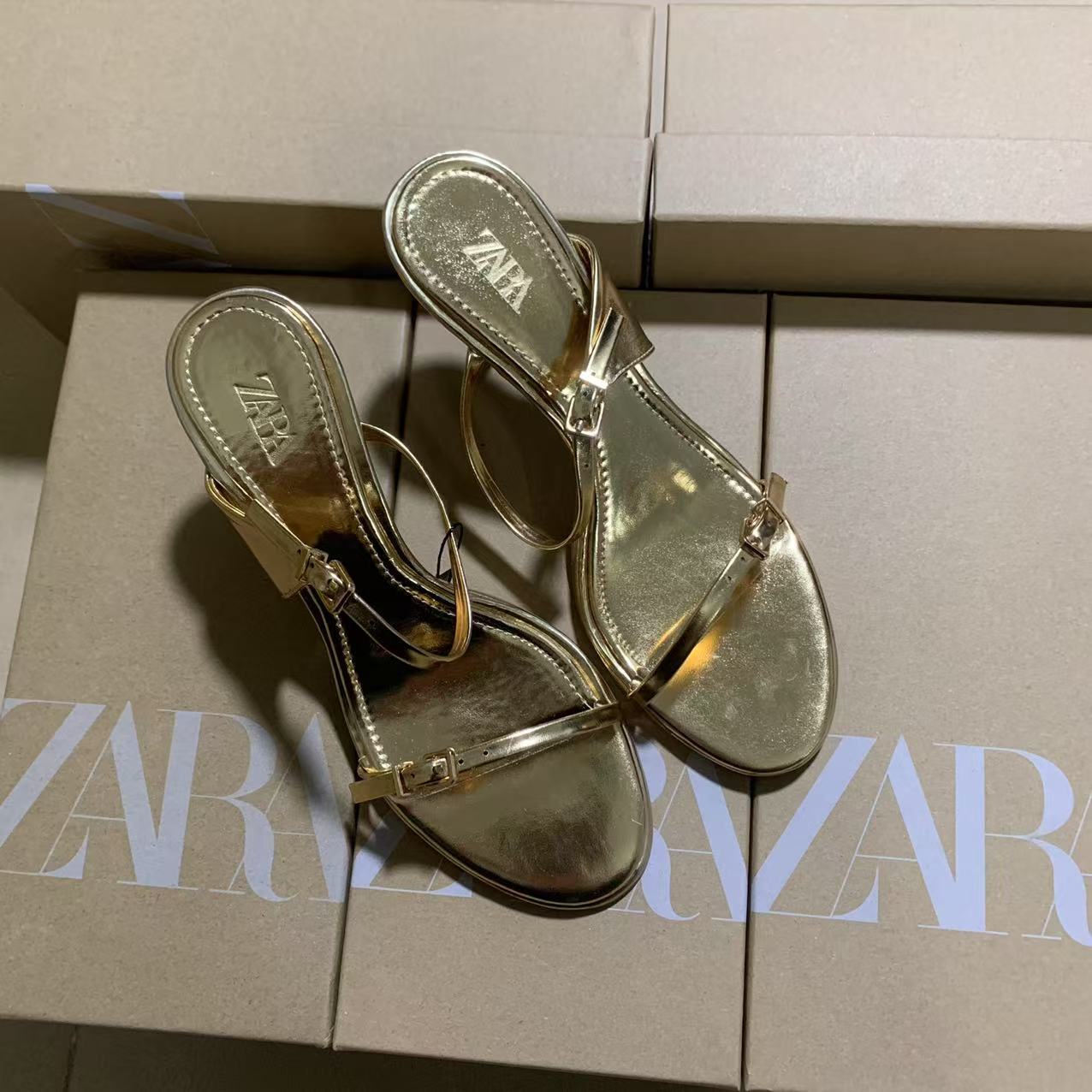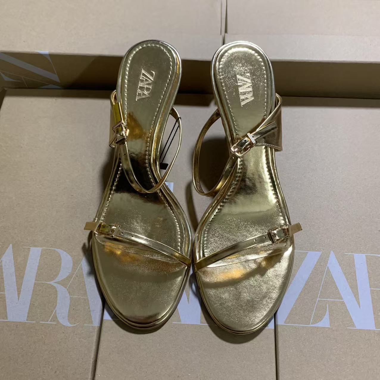 ZA 2025 Spring New Buckle With Stylish Metal Fine High Heels Golden Dew Temperament Sexy Shoes HZ0115