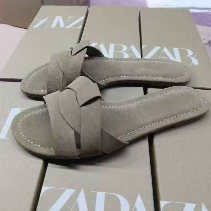 ZA Home 2025 New Wearing Sandals Women's Fashion Leather Shoes HZ0115