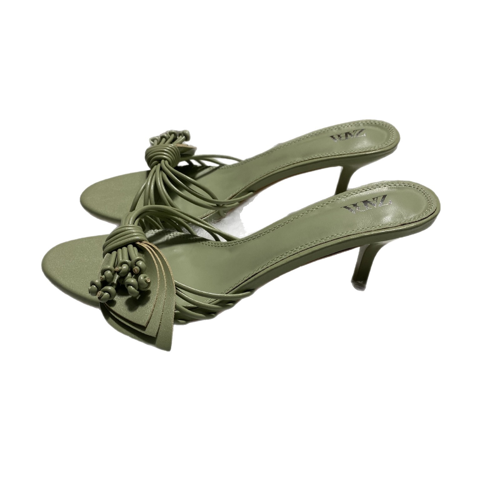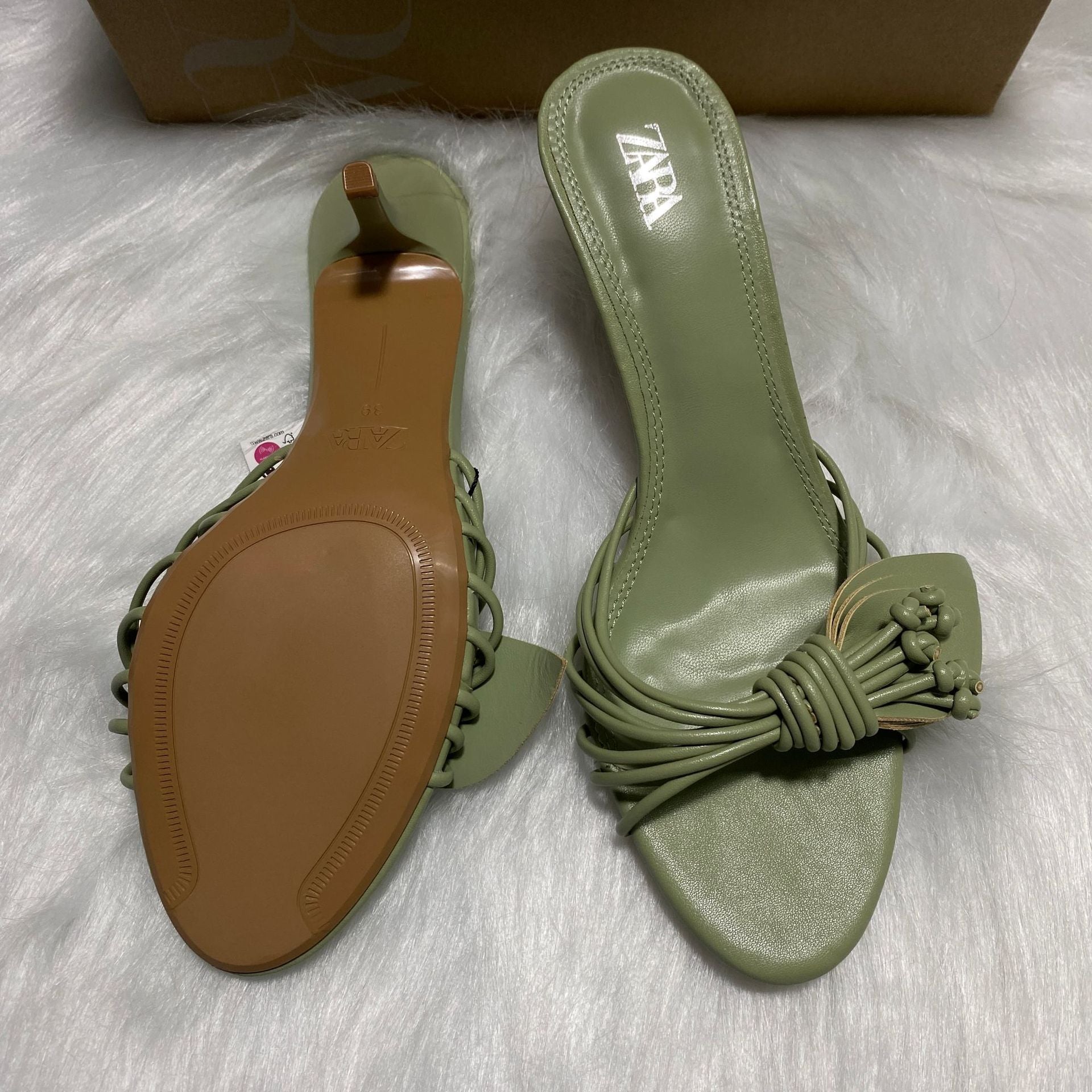 ZA Home 2025 New Women's Shoes Green Petals Low Heel Temperament High Heels High-Heeled Shoes Behind The Shallow Mouth Stumbling Single Shoes HZ0115