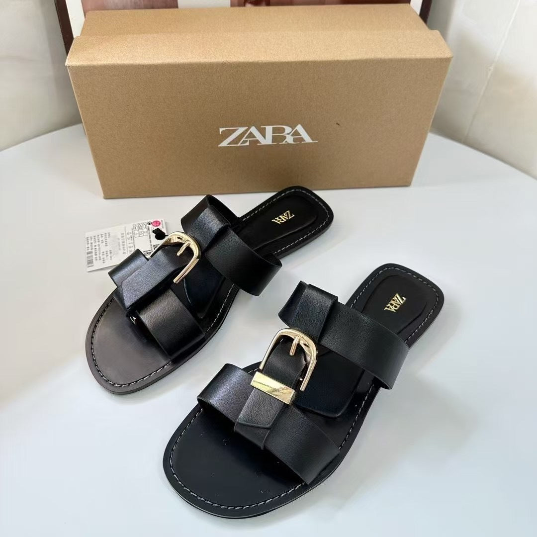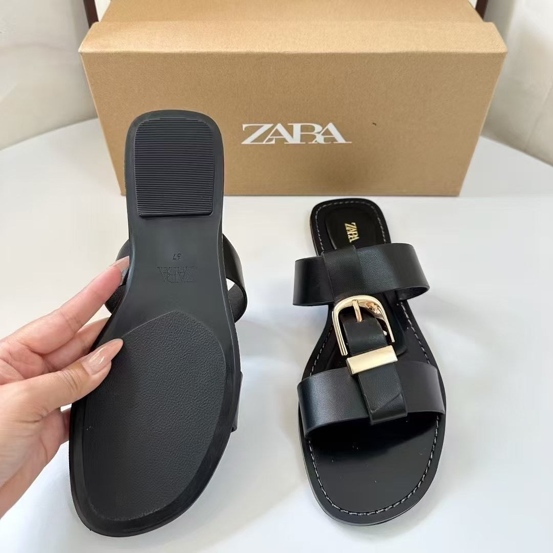 ZA2025 New Beach Flat Shoes Comfortable Fashion Large Size Square Buckle Spring Comfortable HZ0115