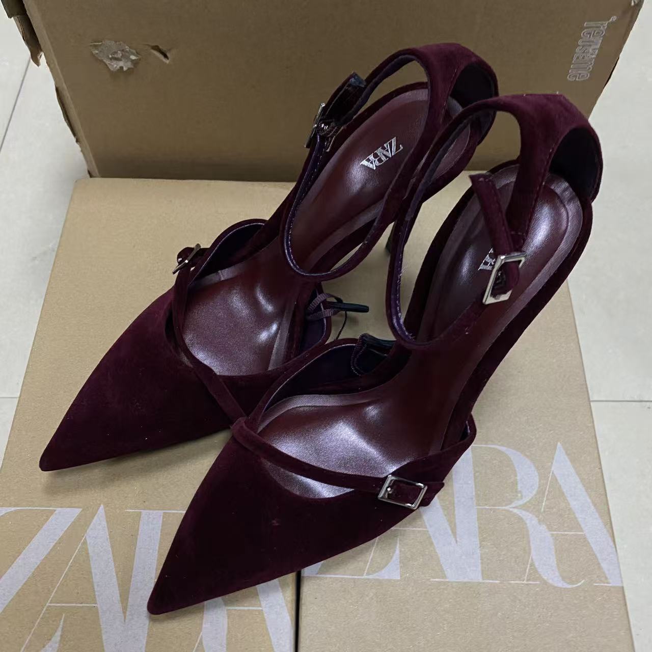 ZA2025 Spring New Women's Shoes Red Velvet Head Light-High Muller Shoes Buckle Fine Women's Shoes HZ0115