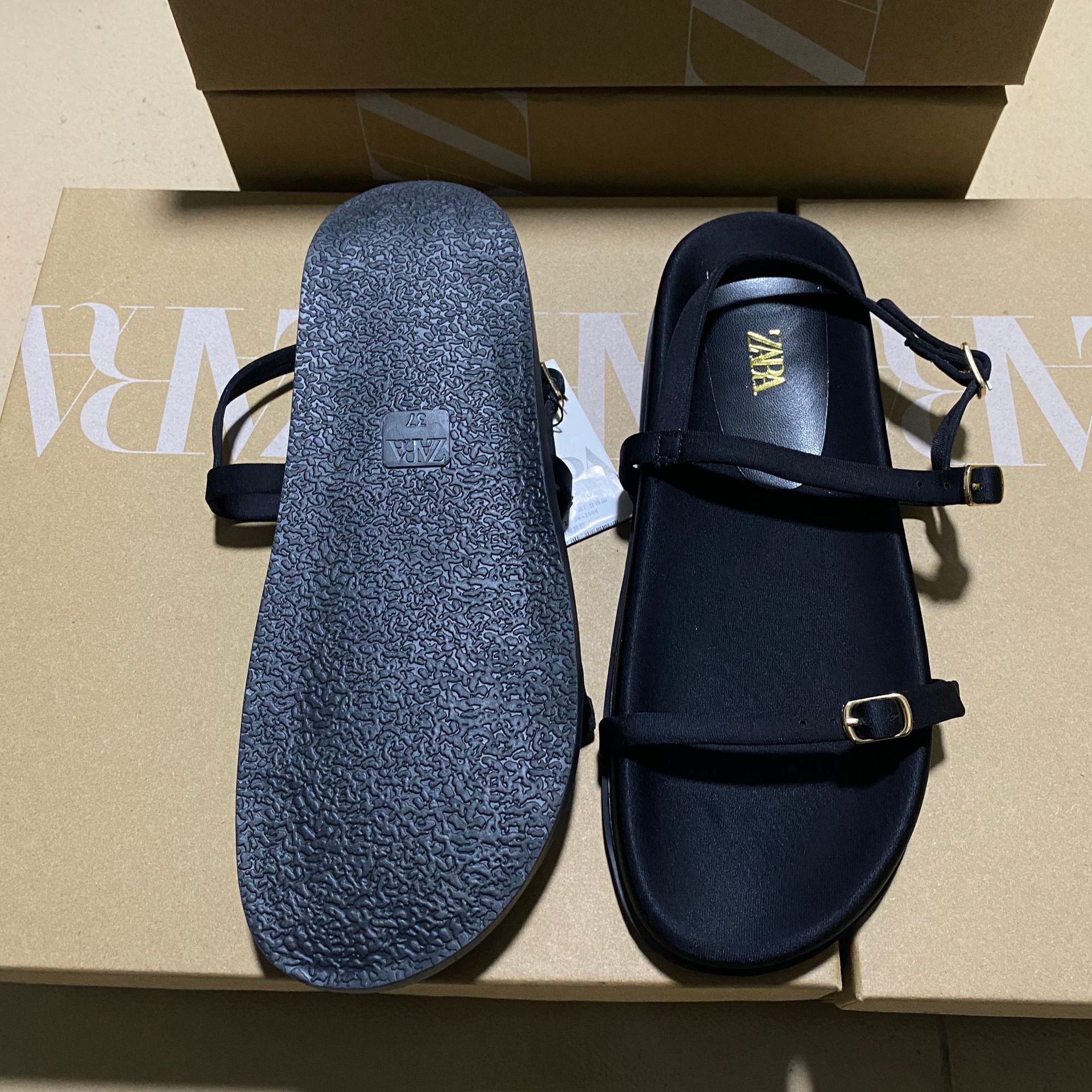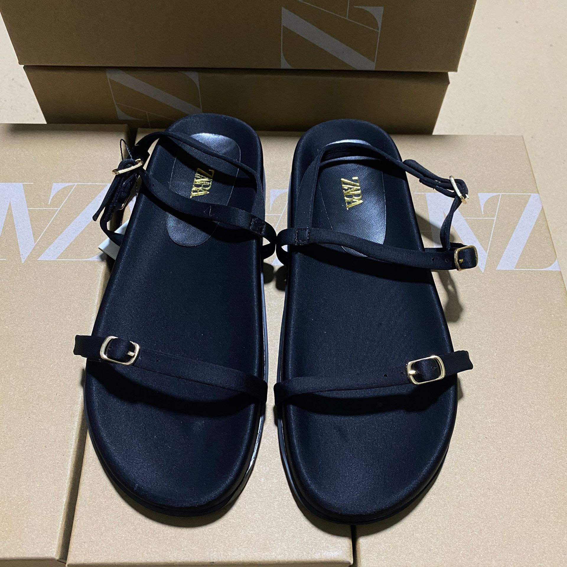 ZAJ2025 Autumn New Square Head Silk And Satin Fabric With A Shallow Flat Bottom Casual Buckle Roman Cool Slippers HZ0115