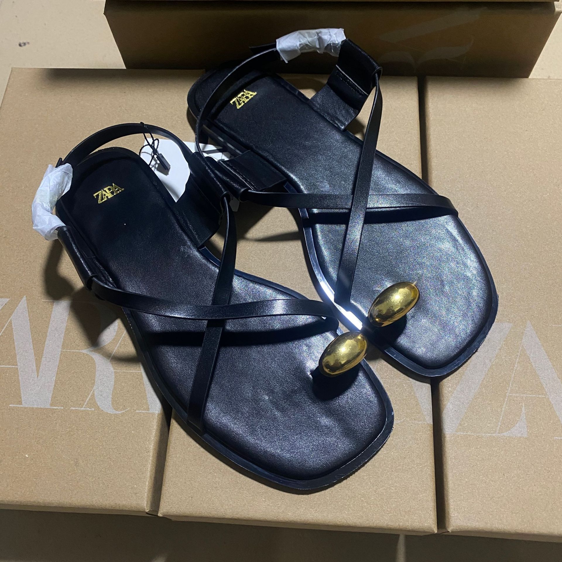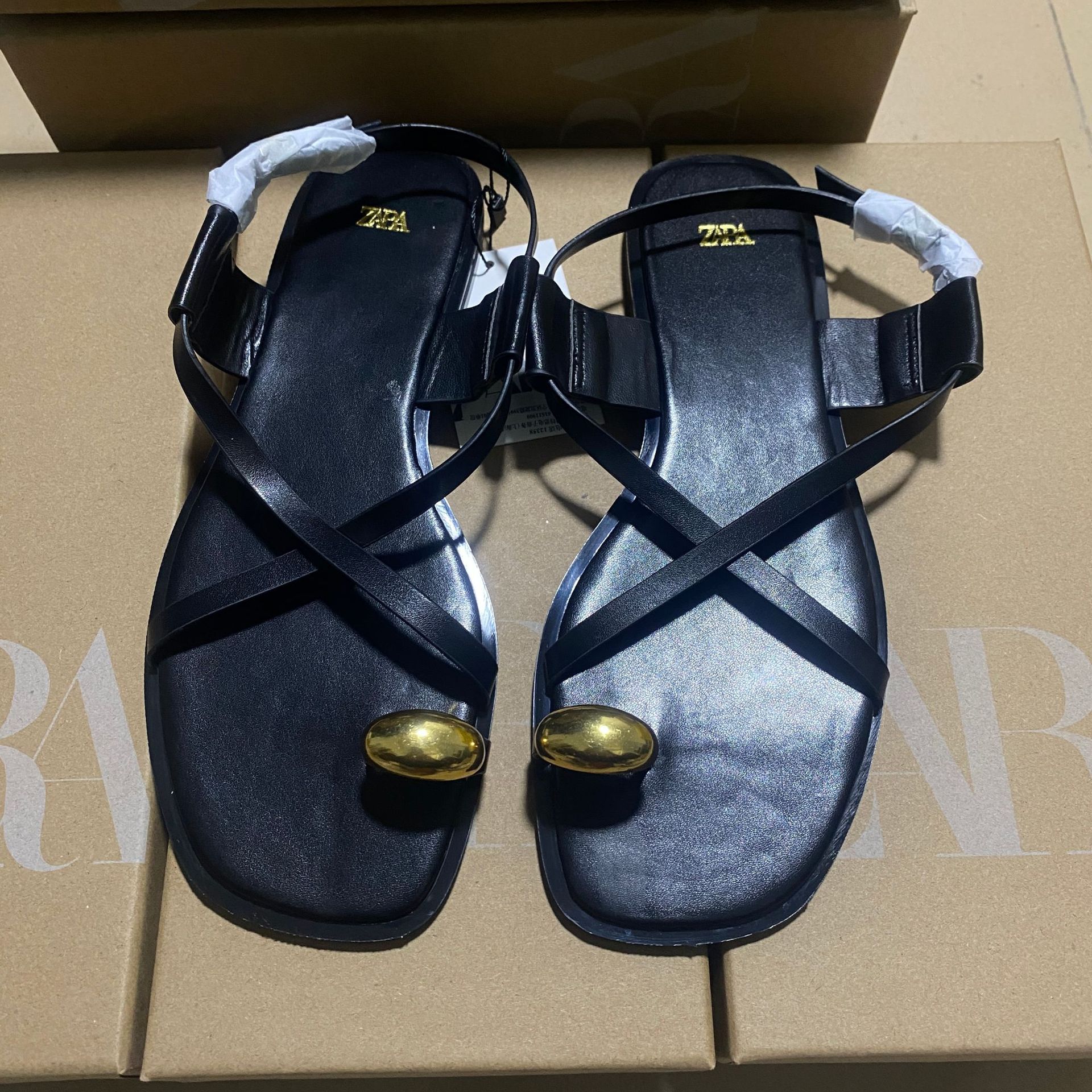 ZAJ2025 Spring Cross-Lace Metal Flat Sandals Women's Leisure Beach Shoes Soft Soles Toes Roman Shoes HZ0115